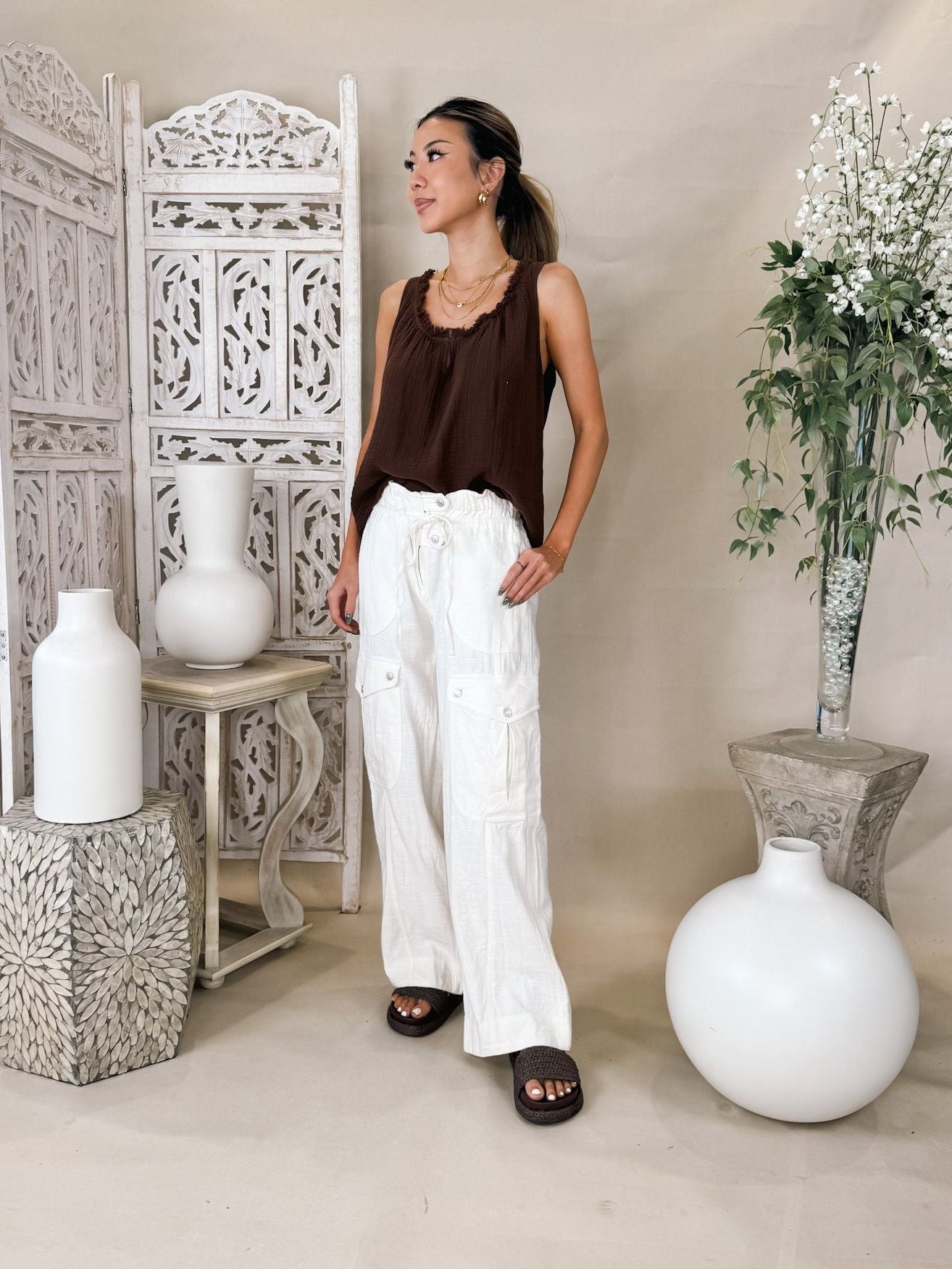 A cool new take on a forever classic, these cargo-inspired pants are featured in a high-rise, fitted style with staple pocket detailing for a utility-inspired touch.