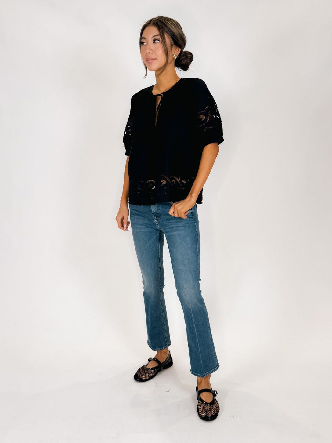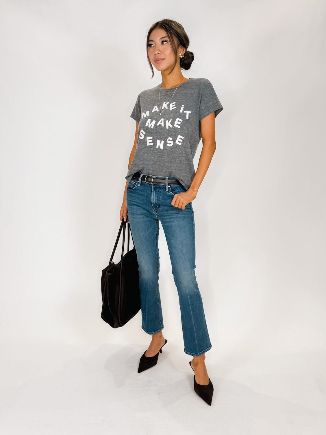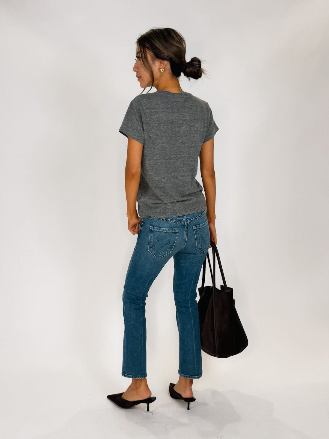This iconic high-rise bootcut has an ankle-length inseam, zip fly and a clean hem. Made from semi-rigid SUPERIOR denim, Get Two Birds Stoned is a mid-blue with whiskering and fading at the knees.