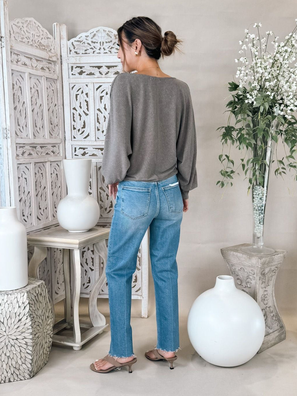 All wrapped up in perfection. That’s the feeling this lightweight, ribbed sweater top gives. Mimicking a boat neckline, this super soft, easy-fitting top offers stylish details like a balloon sleeve that gives way to a fitted cuff. Adjust the sleeve length and you have a more exaggerated balloon.
