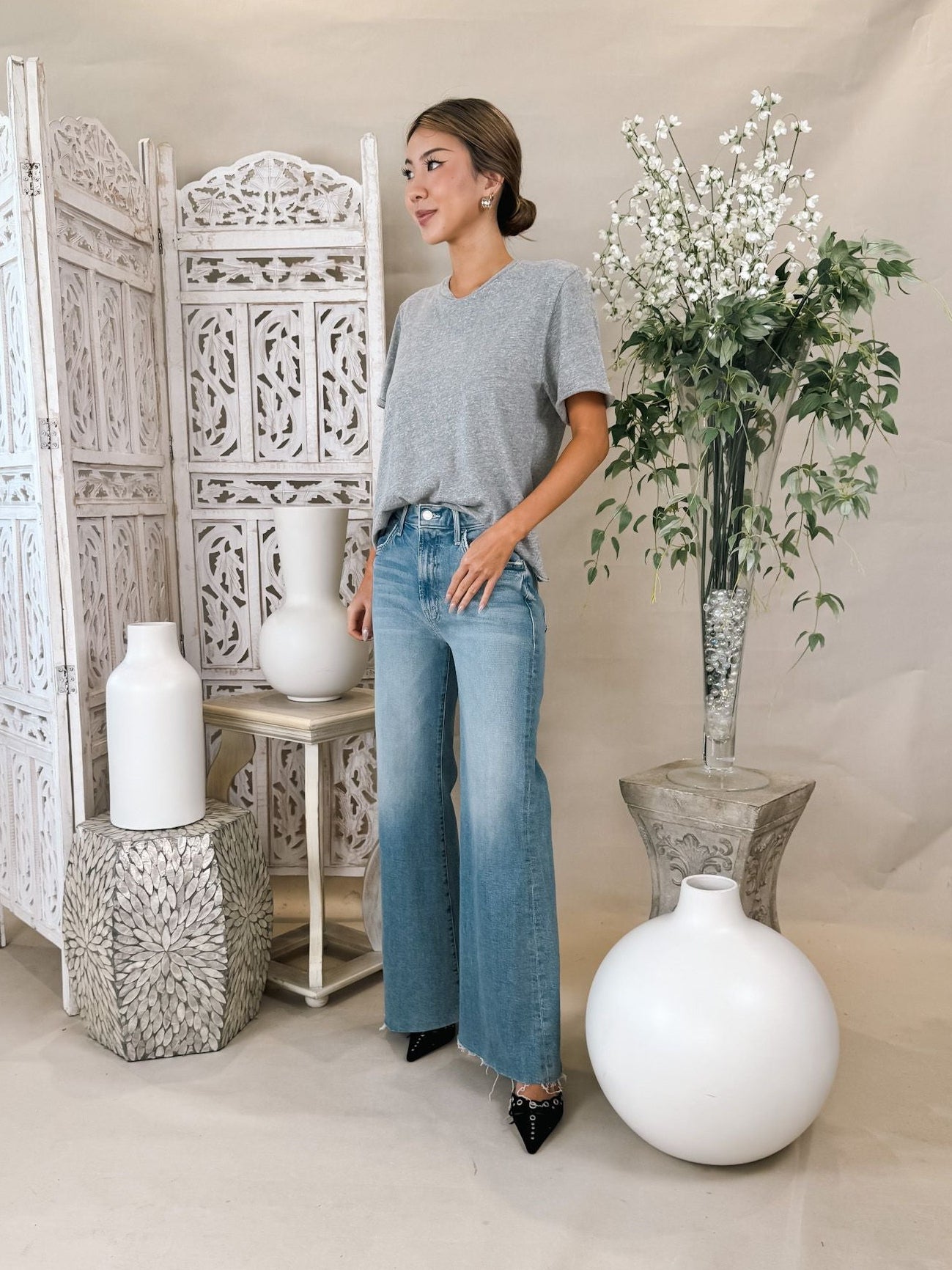 - I Confess is a light blue wash with whiskering, fading and distressed details