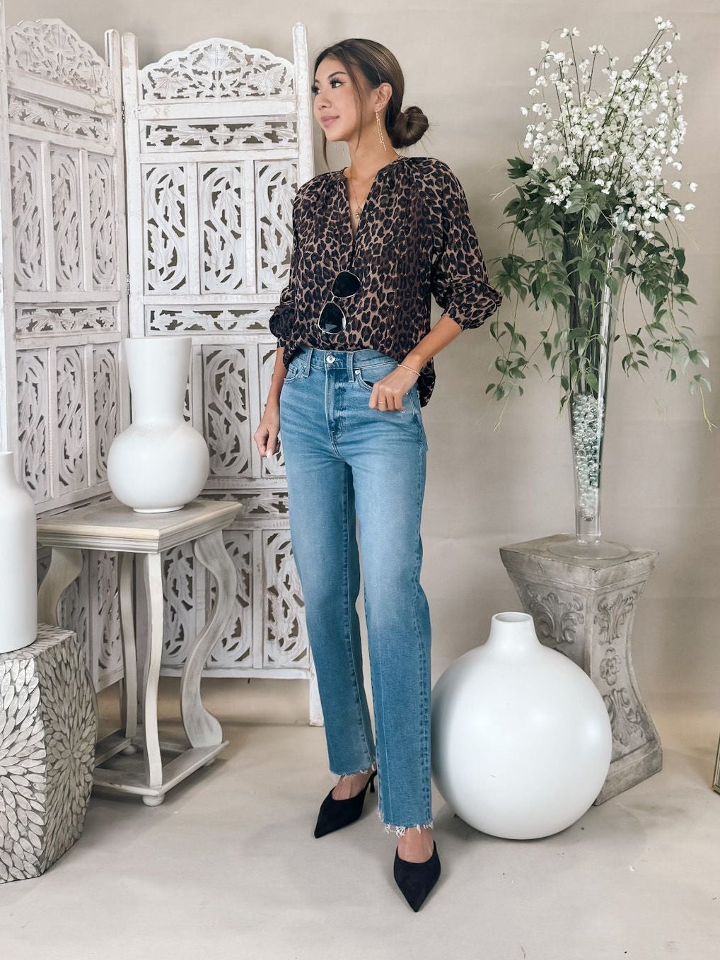 Elevate your day-to-night look with the Saint leopard print top by Rails. Finished in soft lyocell-blend fabric, this button-front top features a relaxed fit, gathered neckline, and long puff sleeves that hit just above the wrist.