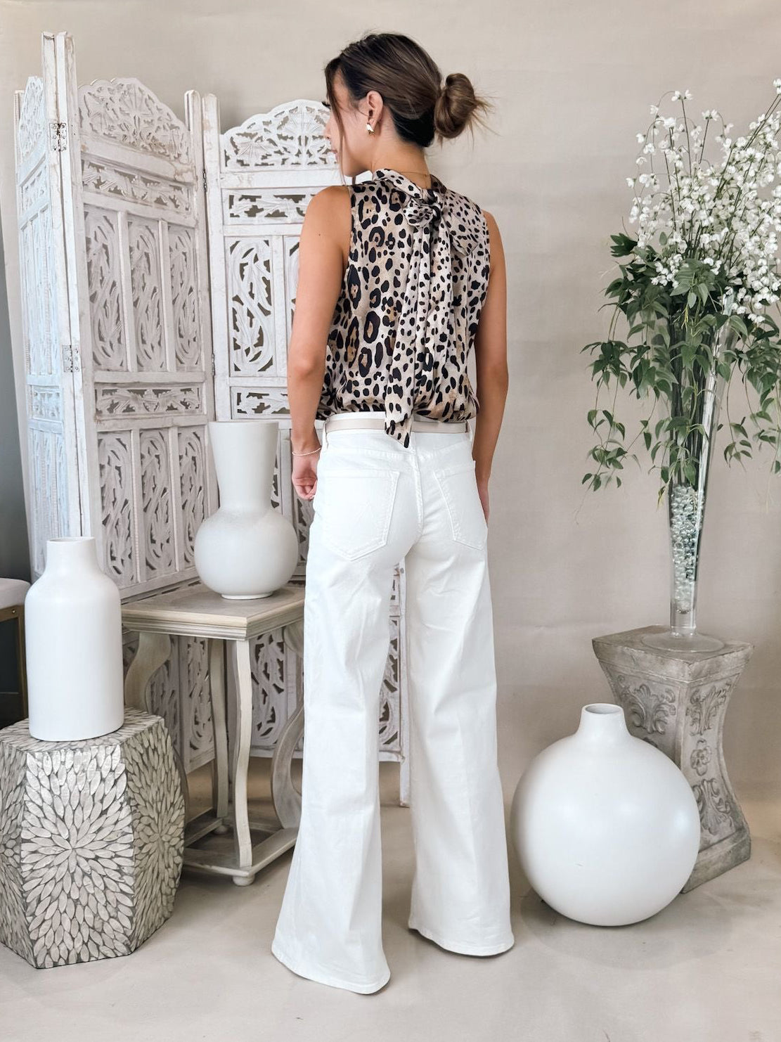 The sleeveless Luka top is an easy high-neck sleeveless silhouette cut from a gorgeous Floral Lattice printed satin. Featuring a self-tie at the neckline, this versatile style can be paired with everything from the coordinating Fay skirt to wide leg trousers under an oversized blazer.