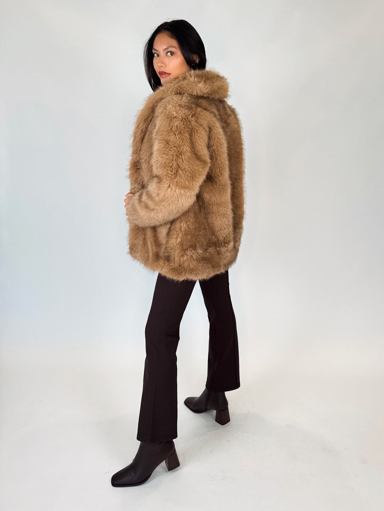 Plush faux fur makes this oversized coat as statement-making as it is warm. The collared design and relaxed fit give it a modern edge, while deep pockets add practicality. The ultimate cold-weather layer for throwing over any look.