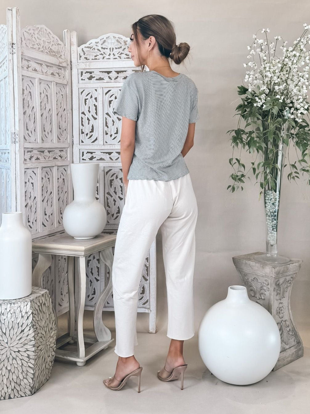 soft. eternal. definitive. the ideal, relaxed-fit crew neck tee. subtly captivating, never overt. the must-have piece you'll want to don every day. matches perfectly with mid-rise denim.