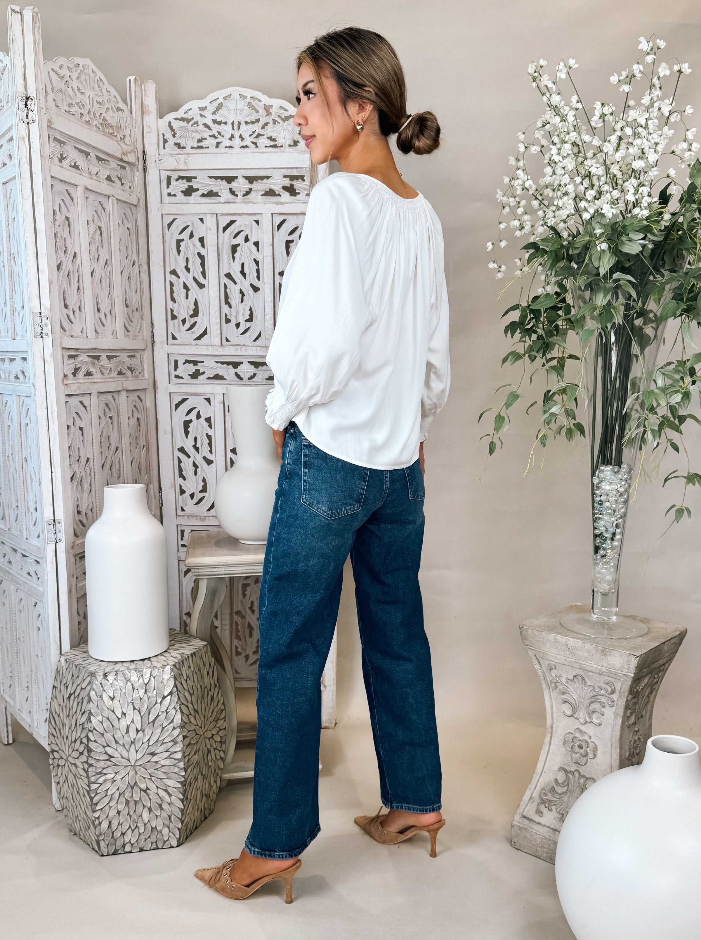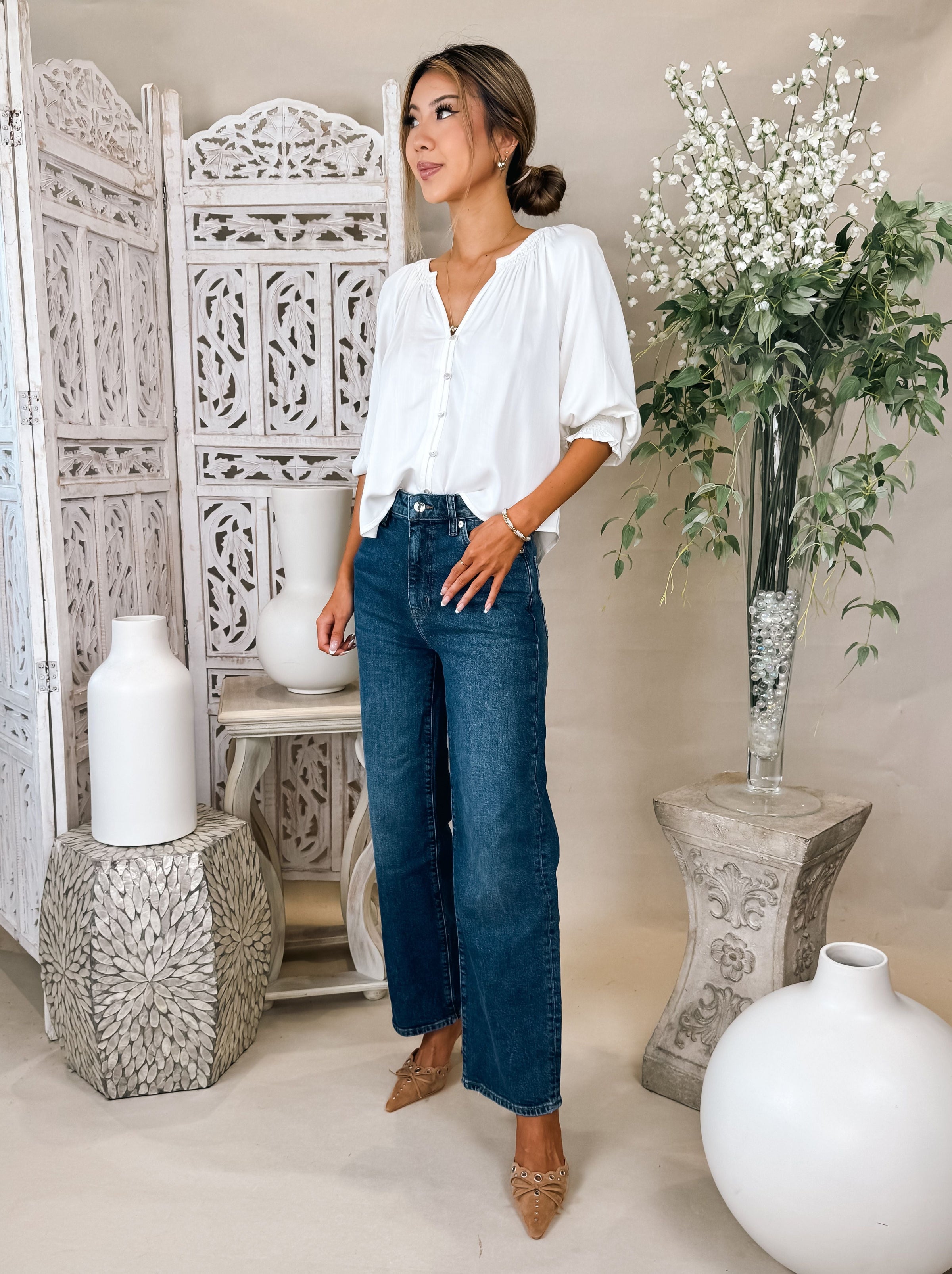 An ultra-soft Tencel denim blouse designed to keep you comforable. The Mariah has peplum, three-quarter sleeves with shirred cuffs, a roomy fit and natural shell buttons.
