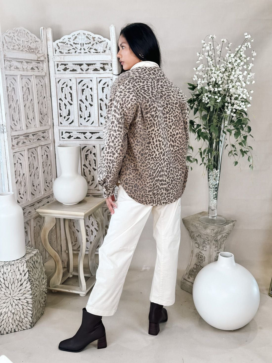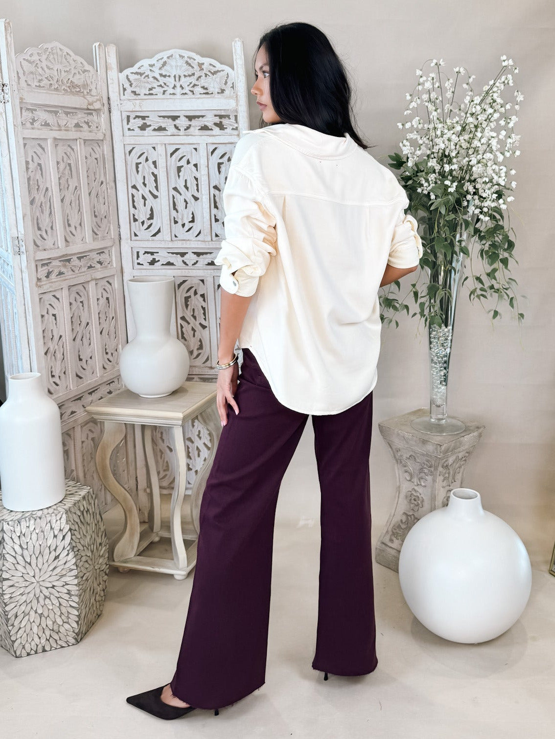 - Relaxed button-front shirt