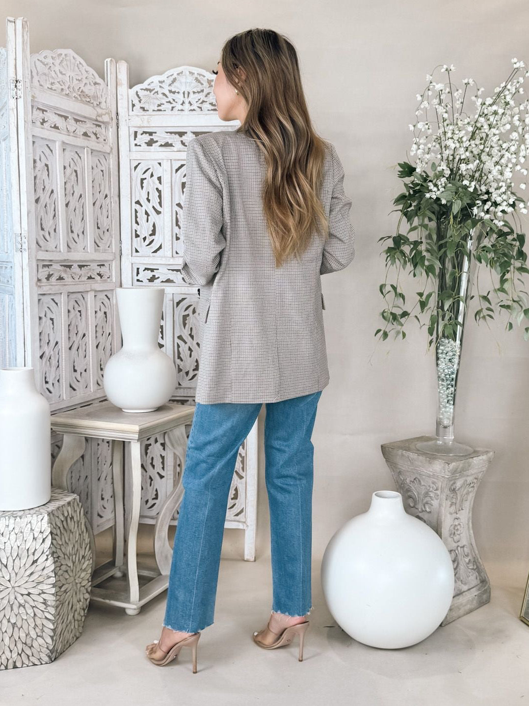 - Fabric: Lightweight, non-stretch houndstooth tweed