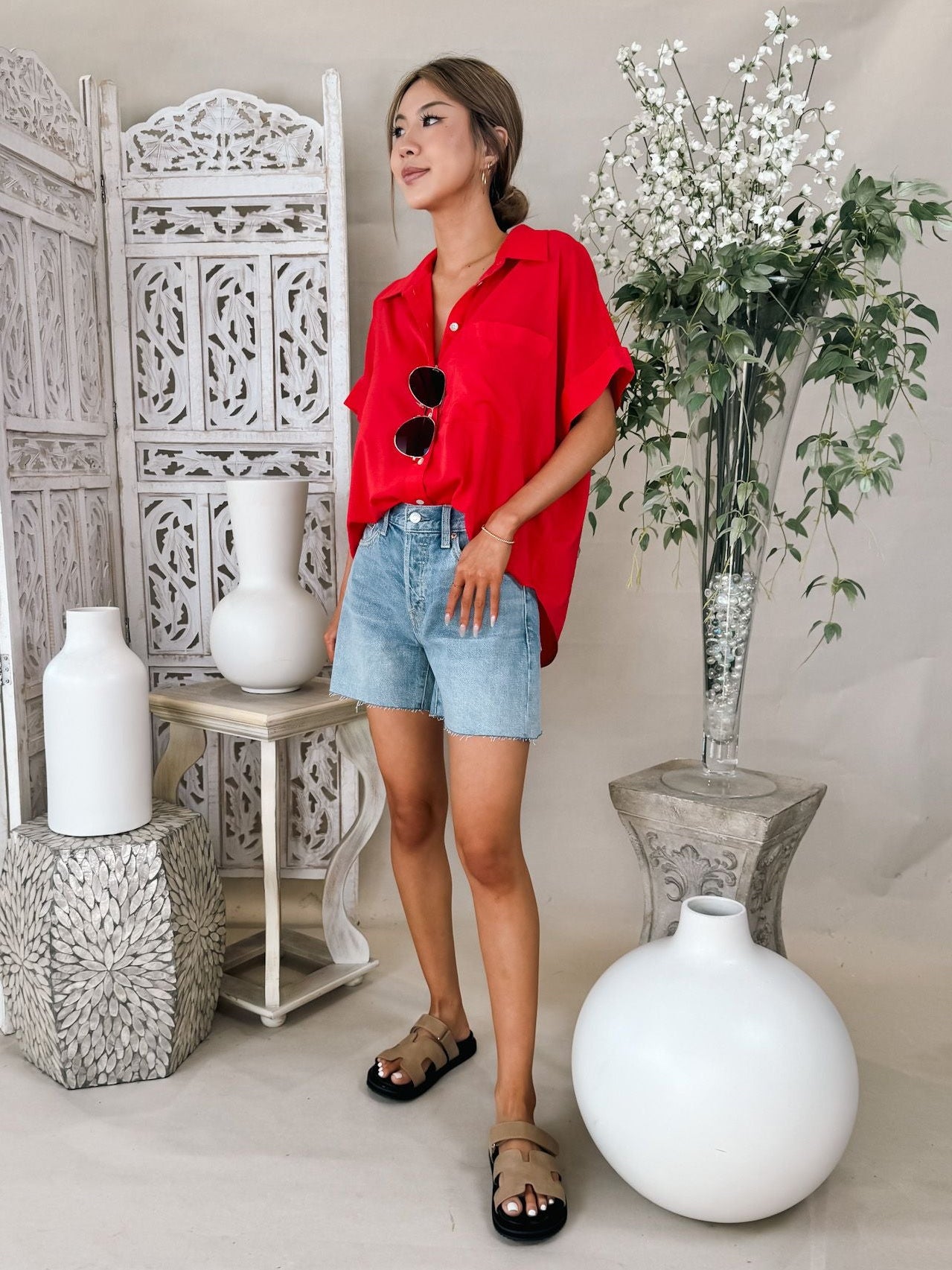 - High rise cut off shorts