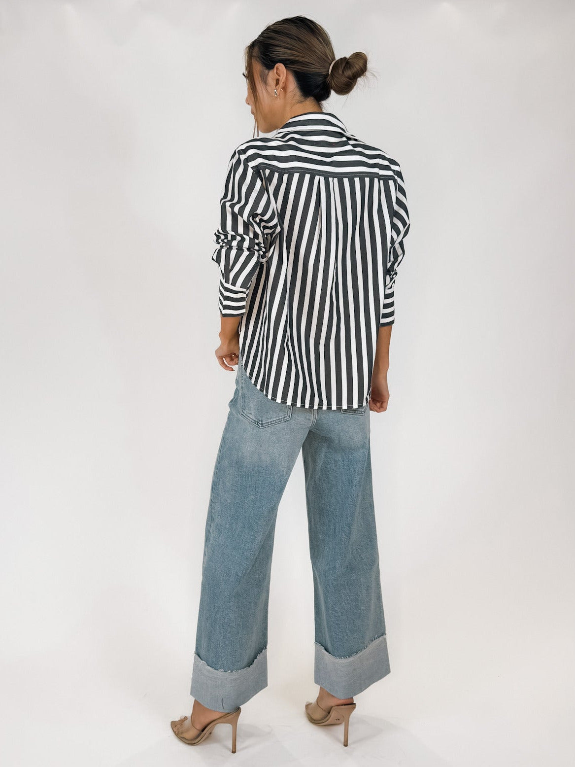 Monroe is updated this season in our crisp multicolor stripe cotton. This classic button-front shirt features a left chest patch pocket, back yoke, and shirttail hem.