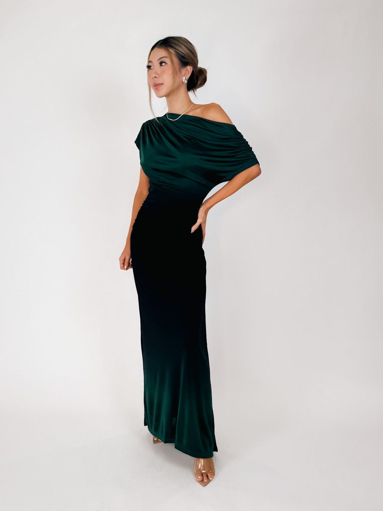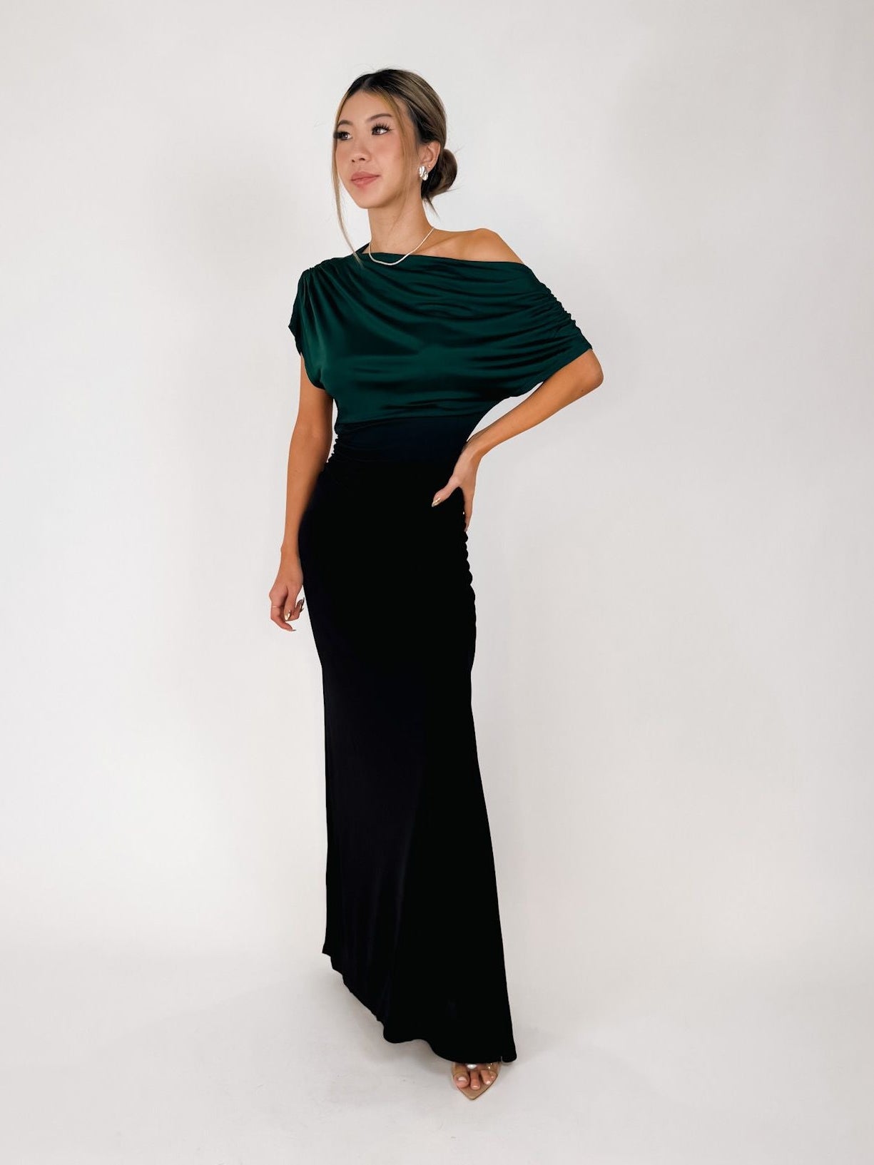 The Valenciana Top is an effortlessly draped silhouette that can be styled as a wide boat neck or worn off one shoulder for a relaxed, party-ready vibe. Featuring a ruched seam on the short sleeve, it brings a touch of detail to an otherwise minimal shape.