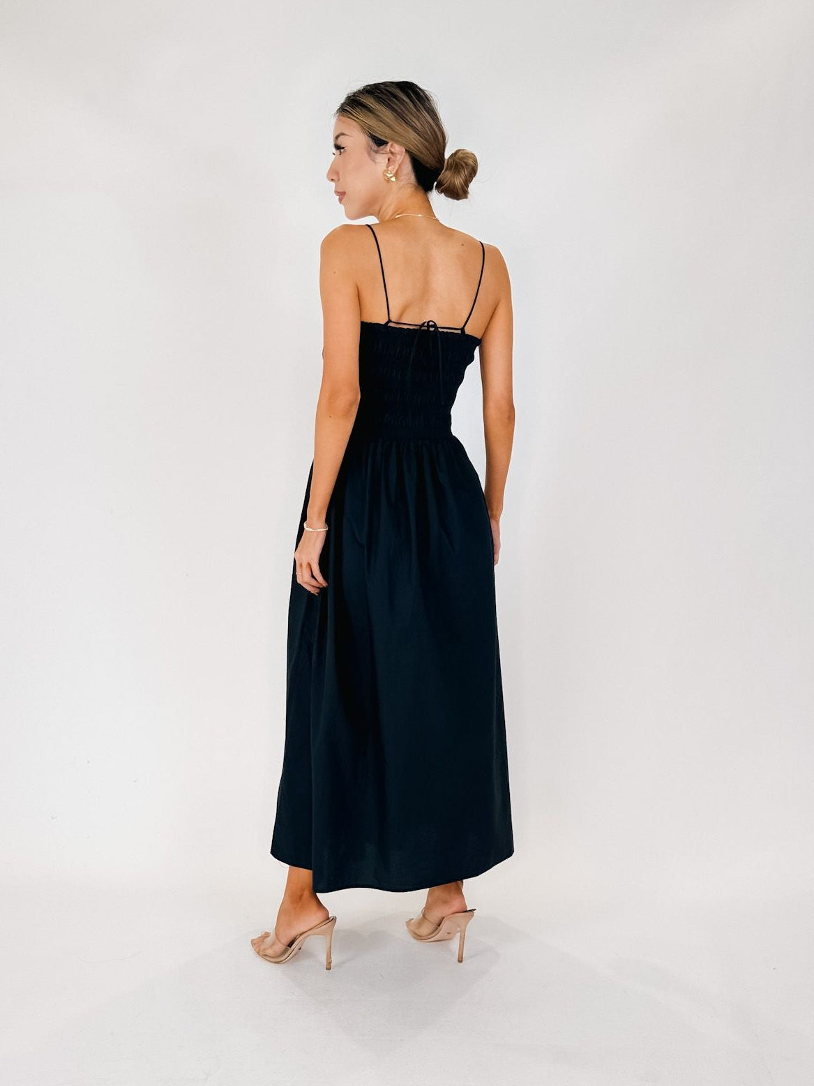 Made from lightweight cotton poplin, this midi dress features a fully smocked bodice that fits close to the body before flowing into a relaxed skirt. The square neckline and side pockets make it as practical as it is pretty.