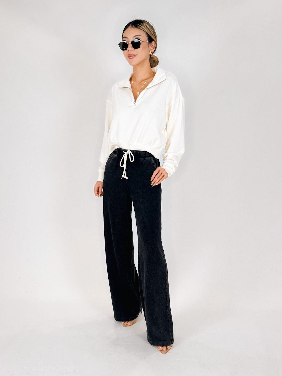 - Elastic waistband with drawcord, Side seam pockets